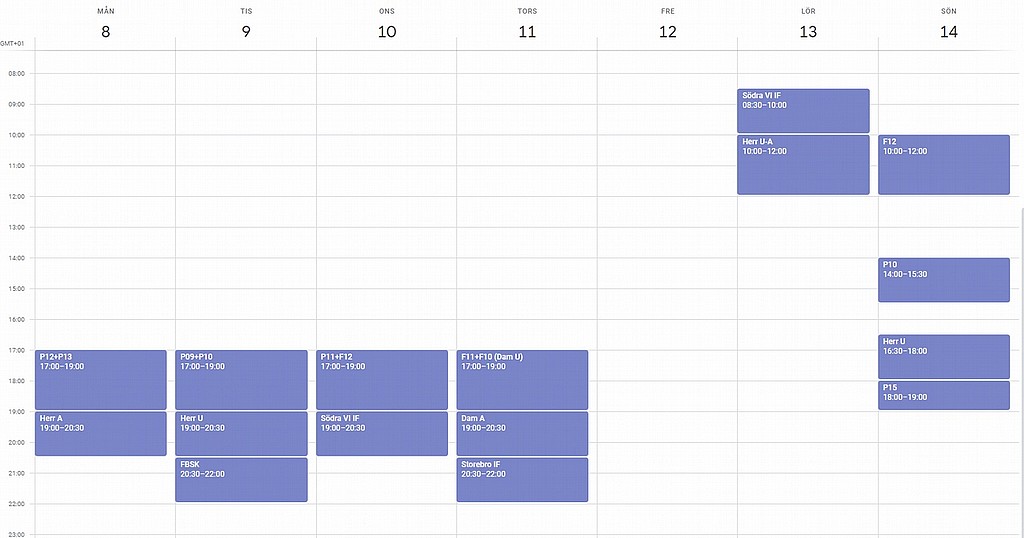 Så här ser tiderna ut just nu i bollhallen. Är ni intresserade av tider fre-sön så hör av er. Vi har fått prioritera äldsta ungdomslag för veckotider.