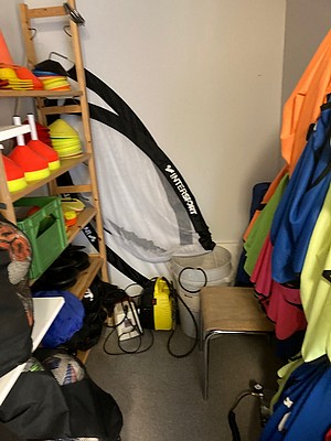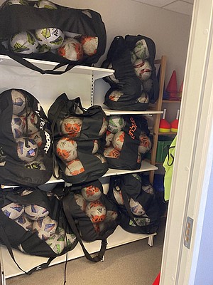 Vi hjälps åt att hålla ordning, en hel del nya bollar och koner osv är utplacerat. Hör av er om något saknas eller skulle behövas. Jag har inte pumpat upp alla bollar, men sorterat och kasserat lite.